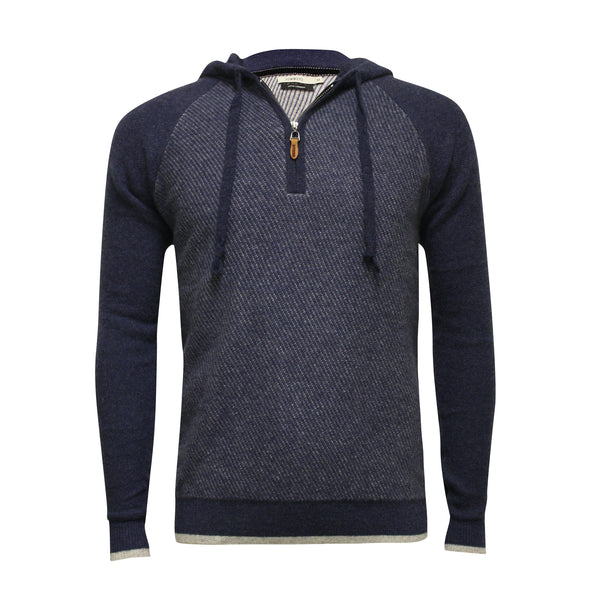 Cashmere Hooded Quarter Zipper Sweater in Diagonal Stitch with cuffs Aspremont