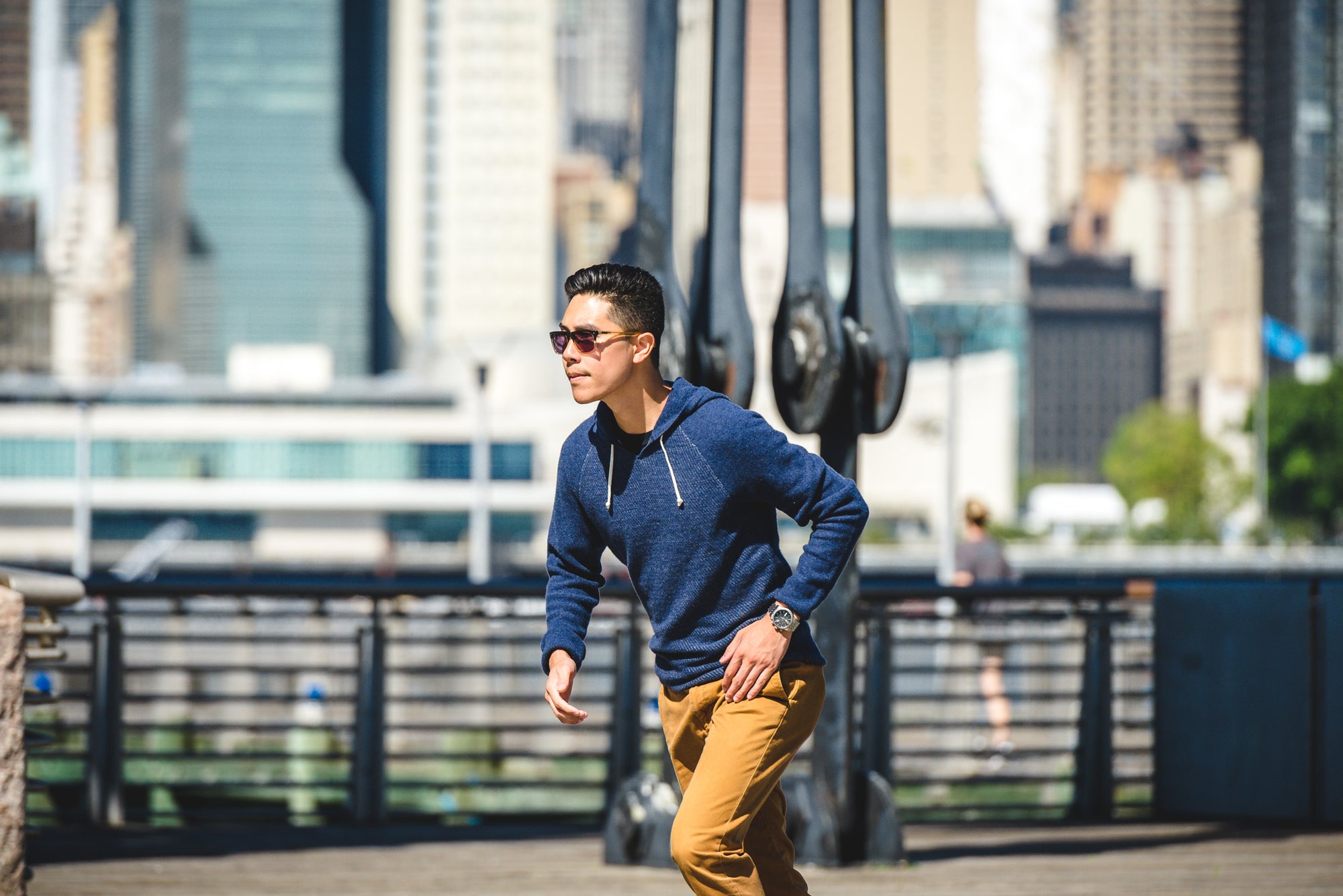 Hooded Cottom Cashmere Sweater in birdseye stitch Deauville