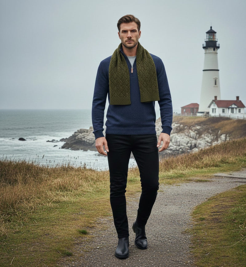 Zig Zag knitted Cashmere Scarf Daulps Army Green