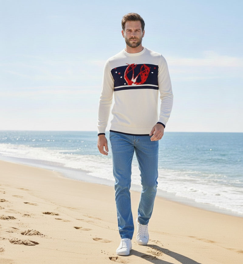 Donegal Maritime Cashmere Zip Neck Sweater Verbier in pique stitch
