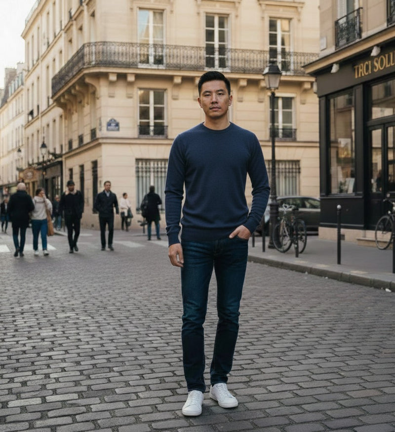 Navy Blue Men´s Cashmere Crew Neck Sweater