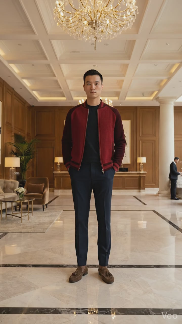 Cashmere Bomber Jacket in Honey comb stitch Toharu Bordeaux Navy