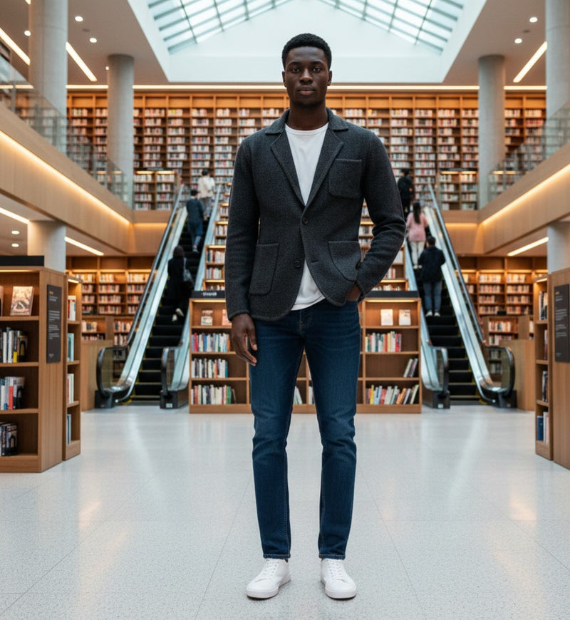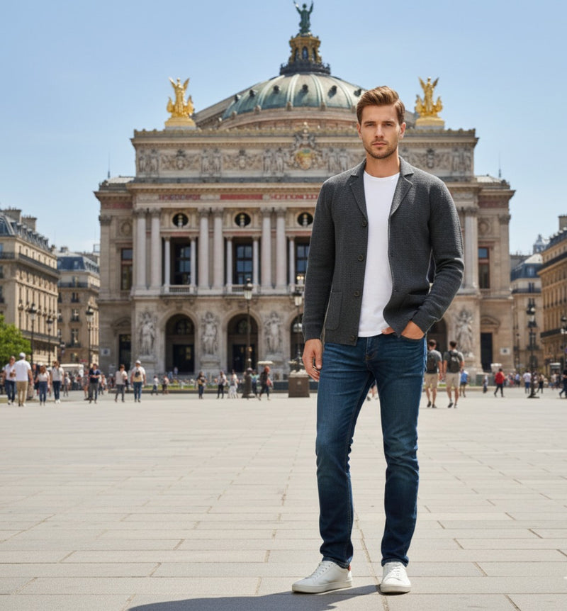 Grey Cashmere woven and knitted padded Jeans Jacket