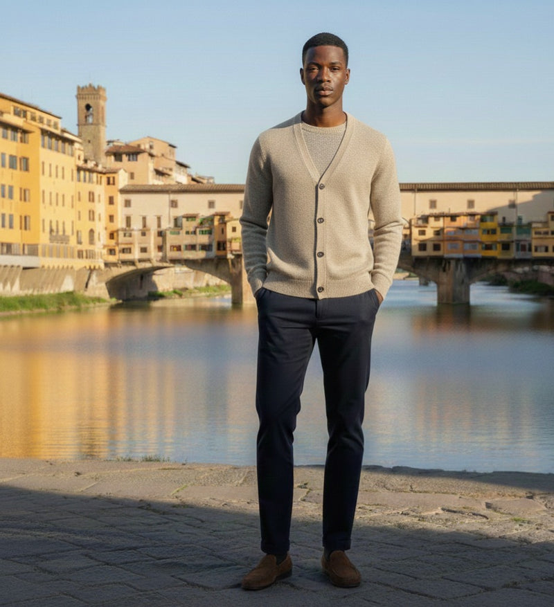 Camel Cashmere Sweater Button Neck Kandui in small Seed Stitch