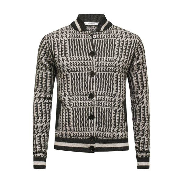 Cashmere Bomber Jacket in Houndstooth stitch Bezoudun Charcoal Grey