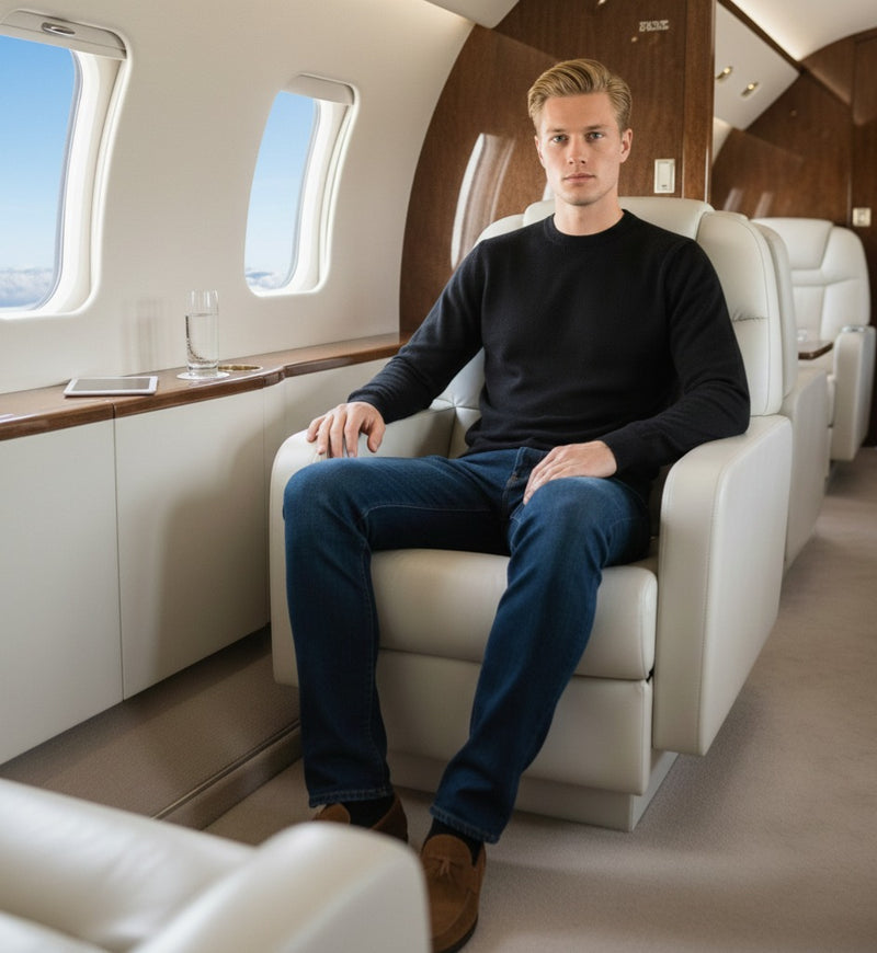 Cashmere Crewneck Sweater Cuebris in left stitch Jeans