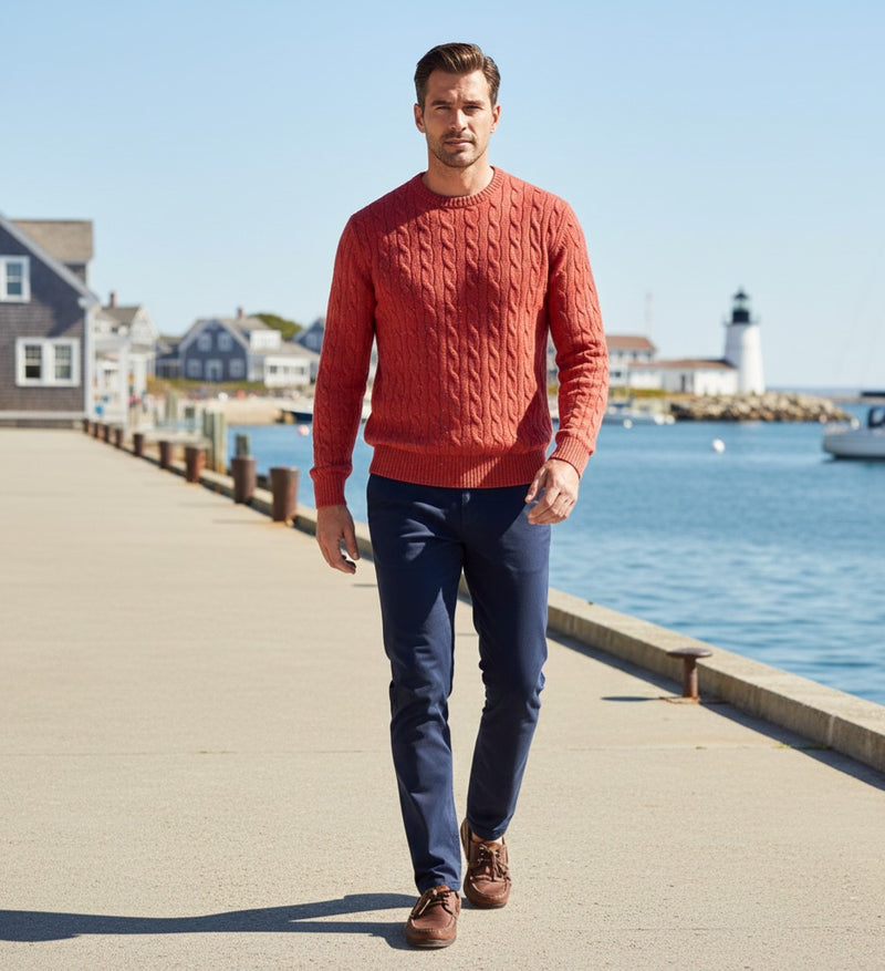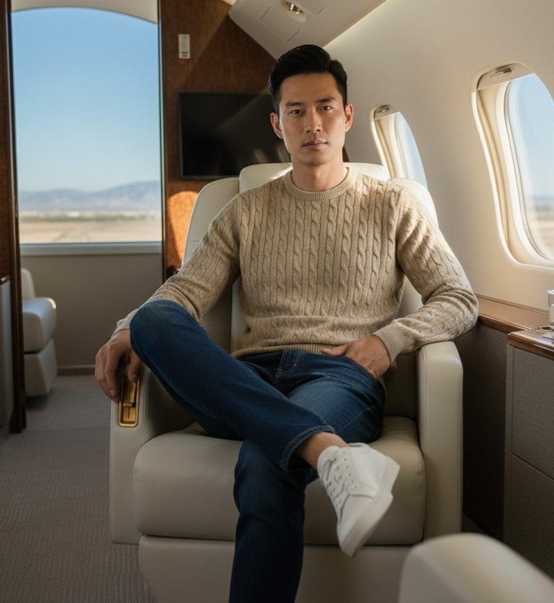 Men´s Cashmere Crew Neck Sweater Shuttle in Rice Stitch - Hommard