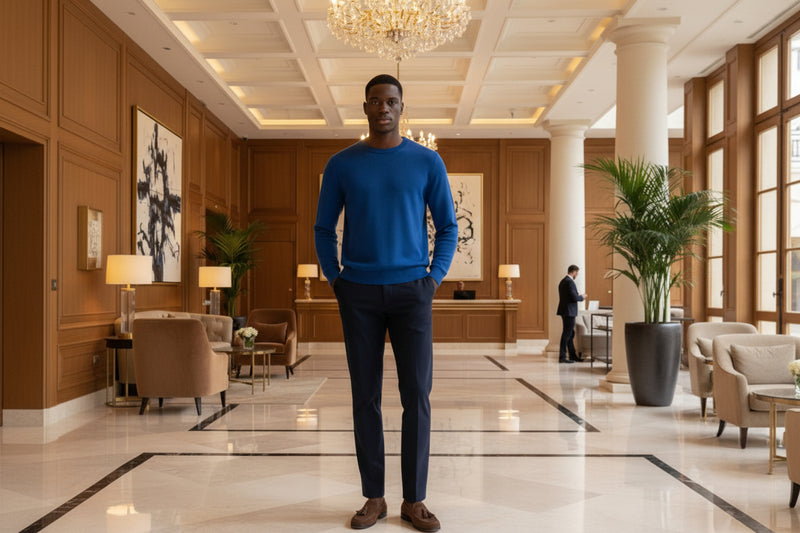 Cashmere Crewneck Sweater in Chunky Rib knit stitch Royal Blue